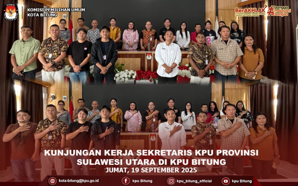 KPU Kota Bitung menerima kunjungan kerja Sekretaris KPU Provinsi Sulawesi Utara, Bapak Meidy Malonda, di kantor KPU Kota Bitung. Kehadiran beliau disambut Sekretaris serta jajaran sekretariat KPU Kota Bitung.