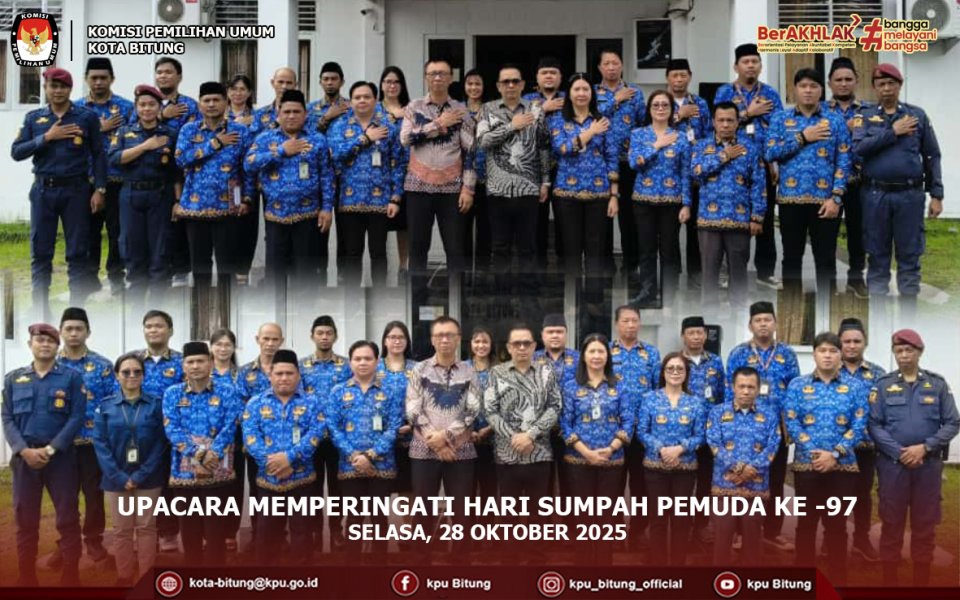 Dalam rangka memperingati Hari Sumpah Pemuda ke-97 Tahun 2025, Komisi Pemilihan Umum (KPU) Kota Bitung melaksanakan upacara bendera yang berlangsung dengan khidmat di halaman kantor KPU Kota Bitung, pada hari Senin, 28 Oktober 2025.