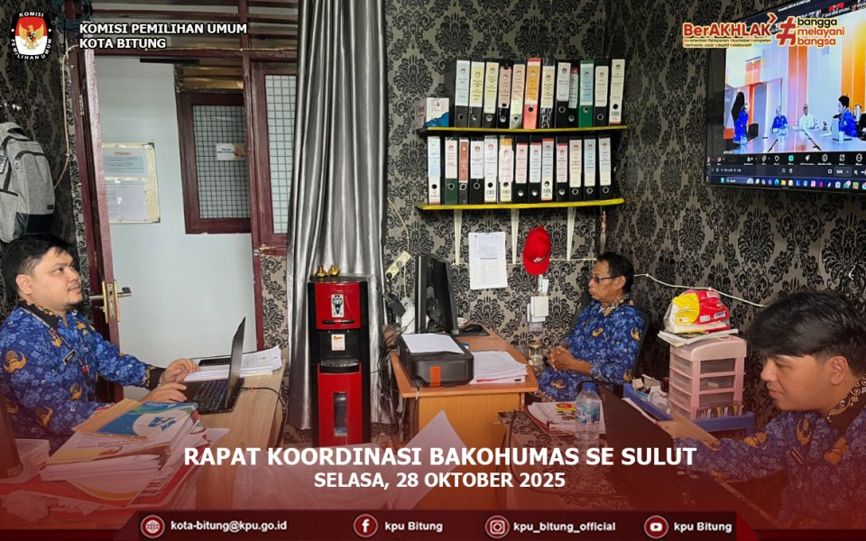 Komisi Pemilihan Umum (KPU) Kota Bitung turut serta dalam kegiatan Rapat Bakohumas se-KPU Sulawesi Utara yang diselenggarakan oleh KPU Provinsi Sulawesi Utara. Kegiatan ini diikuti oleh Ketua KPU Kota Bitung, Ketua Divisi SDM, Parmas, dan Sosdiklih, Sekretaris KPU Kota Bitung serta Kasubag yang membidangi kehumasan.