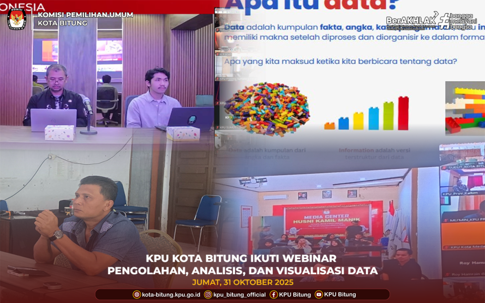 Komisi Pemilihan Umum (KPU) Kota Bitung turut berpartisipasi dalam kegiatan Webinar Series: Pengolahan, Analisis, dan Visualisasi Data yang digelar secara daring melalui Zoom Meeting pada Jumat (31/10/2025).