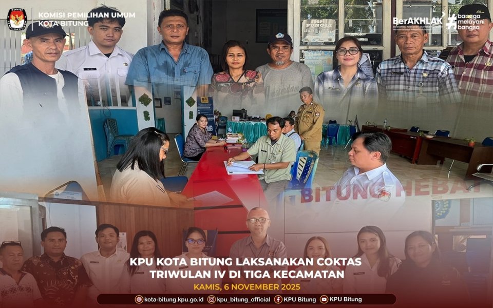 Komisi Pemilihan Umum (KPU) Kota Bitung melaksanakan kegiatan Pencocokan dan Penelitian Terbatas (Coktas) Triwulan IV sebagai bagian dari upaya menjaga keakuratan dan validitas Daftar Pemilih Tetap (DPT).