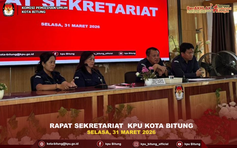 Rapat Sekretariat KPU Kota Bitung dilaksanakan di aula kantor KPU Kota Bitung dengan suasana yang tertib dan penuh semangat kebersamaan. Kegiatan ini menjadi bagian penting dalam memastikan seluruh pelaksanaan tugas kesekretariatan berjalan optimal dan sesuai dengan target yang telah ditetapkan.