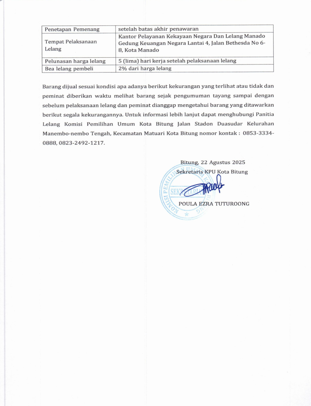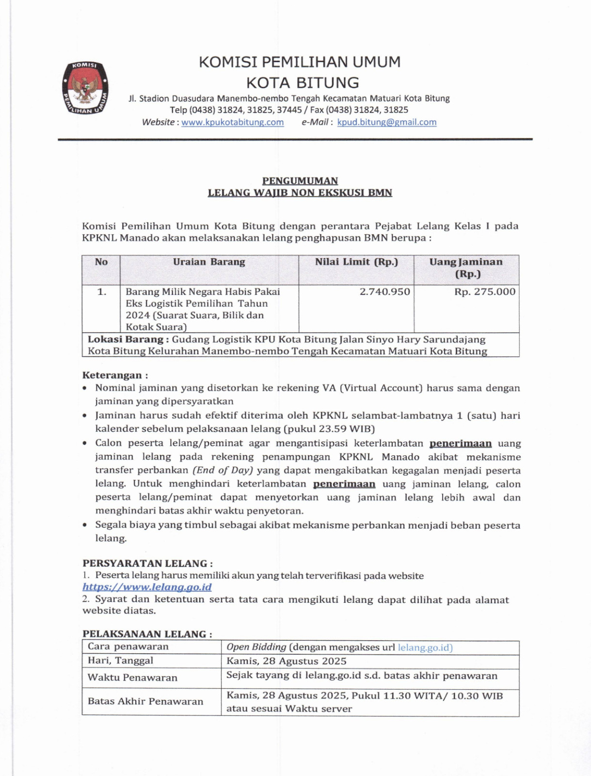 PENGUMUMAN LELANG WAJIB NON EKSEKUSI BARANG MILIK NEGARA (BMN)