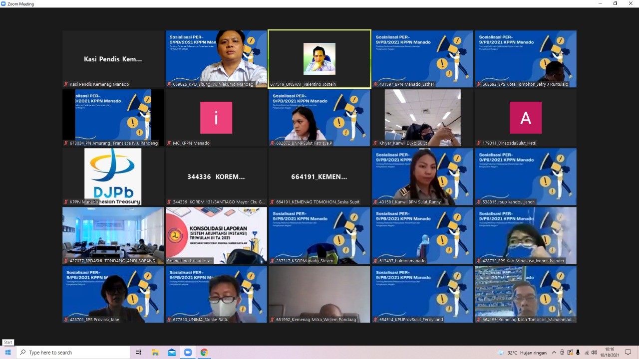 Senin, 18 Oktober 2021 KPU Kota Bitung mengikuti Sosialisasi Langkah-Langkah Akhir Tahun Anggaran 2021 yang diselenggarakan ole KPPN Bitung sesuai Surat Udangan Kepala KPPN Bitung Nomor : UND-64/WPB.30/KP.03/2021 Tanggal 12 Oktober 2021. Kegiatan ini dihadiri oleh satker-satker dalam wilayah KPPN Bitung.