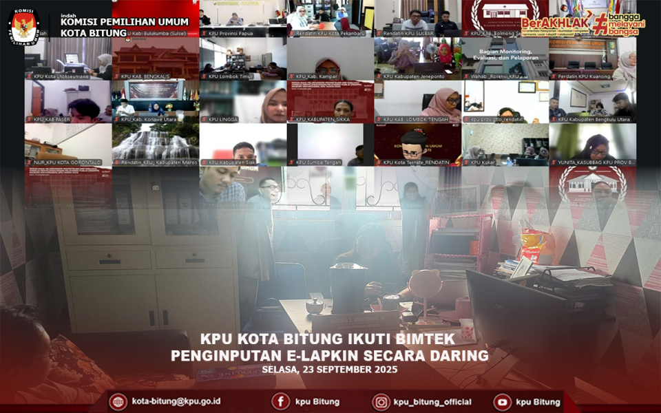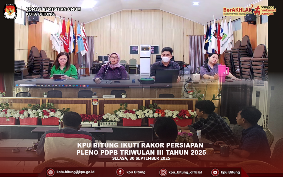 KPU Kota Bitung turut serta dalam Rapat Koordinasi Persiapan Penetapan Pemutakhiran Data Pemilih Berkelanjutan (PDPB) Triwulan III yang digelar secara daring melalui Zoom Meeting pada Jumat, (26/09).