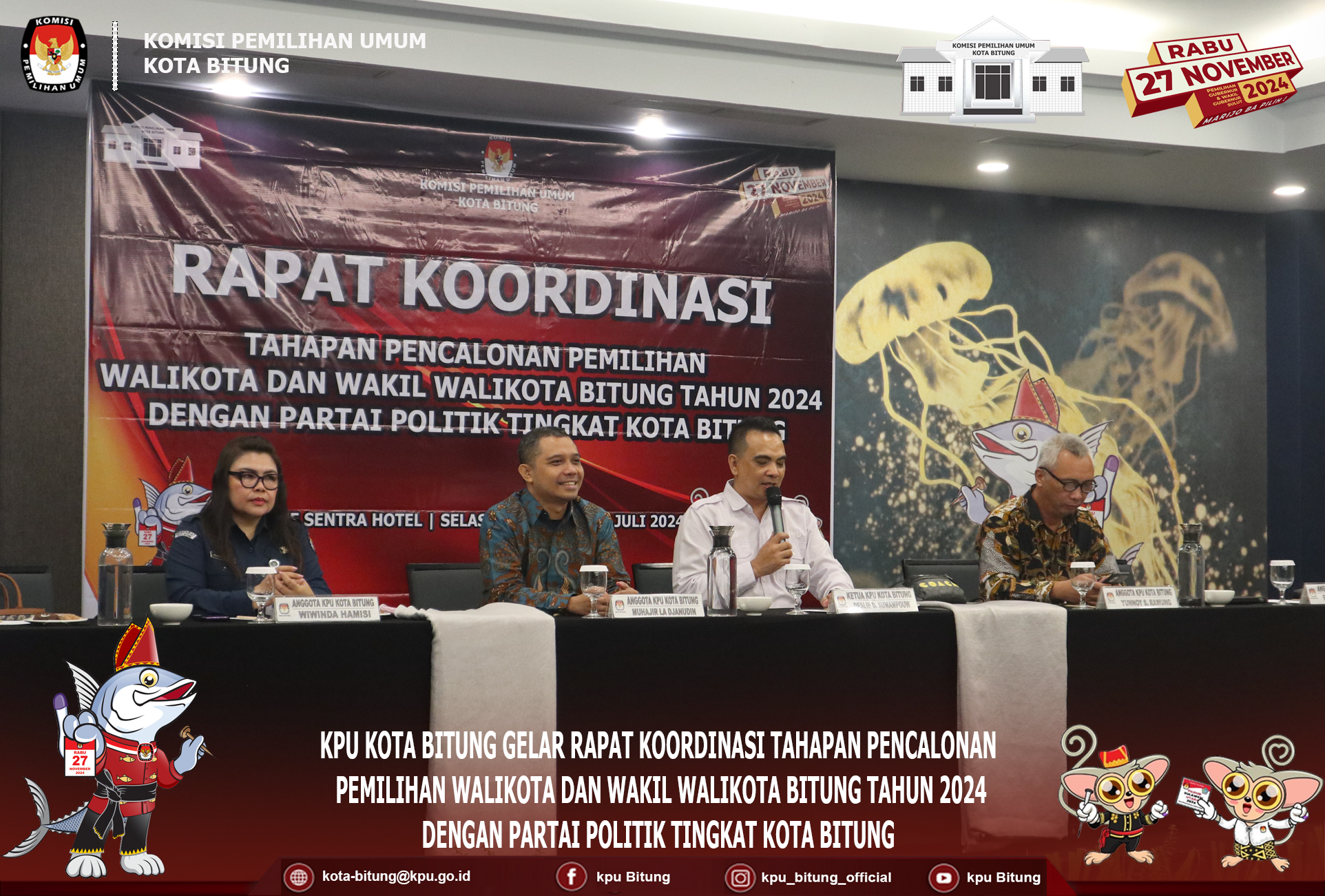 KPU Kota Bitung Gelar KPU Kota Bitung Gelar Rapat Koordinasi Evaluasi Coklit Tahap II dan Laporan Aplikasi E-Coklit Pada Pilkada Serentak Tahun 2024