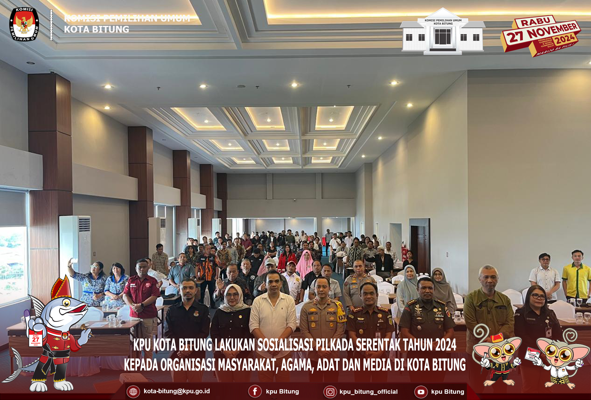 BITUNG, kota-bitung.kpu.go.id. Guna meningkatkan partisipasi masyarakat KPU Kota Bitung Lakukan Sosialisasi Pilkada Serentak Tahun 2024 Kepada Organisasi Masyarakat, Organisasi Agama, Organisasi Adat dan Media di Kota Bitung bertempat di Fave Hotel Bitung, Rabu 17 Juli 2024. Kegiatan ini dibuka secara langsung oleh Ketua KPU Kota Bitung Deslie D. Sumampouw, dalam sambutanya beliau berharap agar supaya tingkat partisipasi masyarakat dipilkada nanti terus meningkat, ujar Deslie. Setelah dibuka sesi selanjutnya diserahkan kepada Ketua Divisi Sosialisasi Pendidikan Pemilih, Partisipasi Masyarakat dan SDM Wiwinda Hamisi sebagai moderator. Dalam kesempatan ini juga hadir narasumber Dandim 1310 Bitung Letkol CZI Hanif Tupen, S.T., M.I.P, Kapolres Kota Bitung AKP. Albert Zai, SIK., MH. Kepala Kejaksaan Negeri Bitung Dr. Yadyn, S.H., M.H. Kapolres Bitung AKP. Albert Zai, SIK., MH menekankan tetang kerawanan dalam tahapan pilkada tahun 2024, contohnya seperti Kampanye diluar jadwal, Black Campain melalui Media Sosial, Isu Sara, Money Politik, Bentrok antar masa pendukun Calon, dan Intervensi dan Pengancaman baik kepada peyelenggaran maupun pemilih, kecurangan tertentu ( Alat peraga masih terpasang saat masa tenang ), adanya Pemilih dari luar Kota Bitung, ketidaknetralan penyelenggara, dan penolakan hasil putusan MK. Dandim 1310 Bitung Letkol CZI Hanif Tupen, S.T., M.I.P mengatakan " Upaya bersama dari semua stakeholder terkait baik Pemerintah, TNI/POLRI , Lembaga Penegak Hukum, LSM dan Masyarakat Sipil, Sangat diperlukan untuk memastikan bahwa Pilkada 2024 di Provinsi Sulawesi Utara dapat dilaksanakan dengan aman dan tertib, sehingga memberikan kontribusi positif bagi demokrasi dan keutuhan NKRI. Kepala Kejaksaan Negeri Bitung Dr. Yadyn, S.H., M.H menjelaskan tentang Penyelenggaraan Pemilu dan Kewenangan Kejaksaan dalam menyukseskan Pilkada Tahun 2024. Kegiatan sosialisasi ini dirangkaikan dengan penandatanganan komitmen bersama Organisasi Masyarakat, Organisasi Agama, Organisasi Adat dan Media terhadap pilkada yang berkualitas, aman dan damai di Kota Bitung. Turut hadir dalam kegiatan ini Ketua Divisi Teknis Penyelenggaraan Yunnoy S. Rawung, Ketua Divisi Hukum dan Pengawasan Muhajir La Djanudin, Sekretaris KPU Kota Bitung dan seluruh Organisasi Masyarakat, Organisasi Agama, Organisasi Adat dan Media Kota Bitung