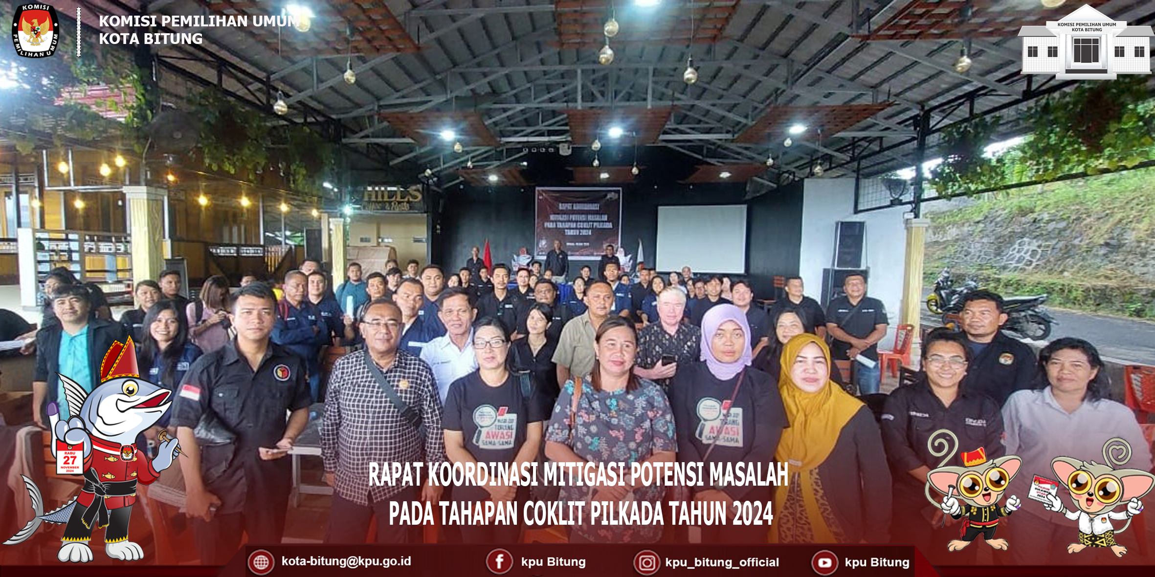 KPU Kota Bitung dalam hal ini diikuti oleh Ketua KPU Kota Bitung Deslie D. Sumampouw, Ketua Divisi Hukum dan Pengawasan Muhajir La Djanudin, Sekretaris KPU Kota Bitung Poula E. Tuturoong, Kasubag KUL Niakumo Mandagi, dan Staff KPU Kota Bitung Felix Ansyu Ikuti Bimbingan Teknis SPIP dan Loka Karya/Workshop Penilaian Risiko (Risk Assesment) Pemilihan Serentak Tahun 2024. Manado 12 - 14 Juli 2024.