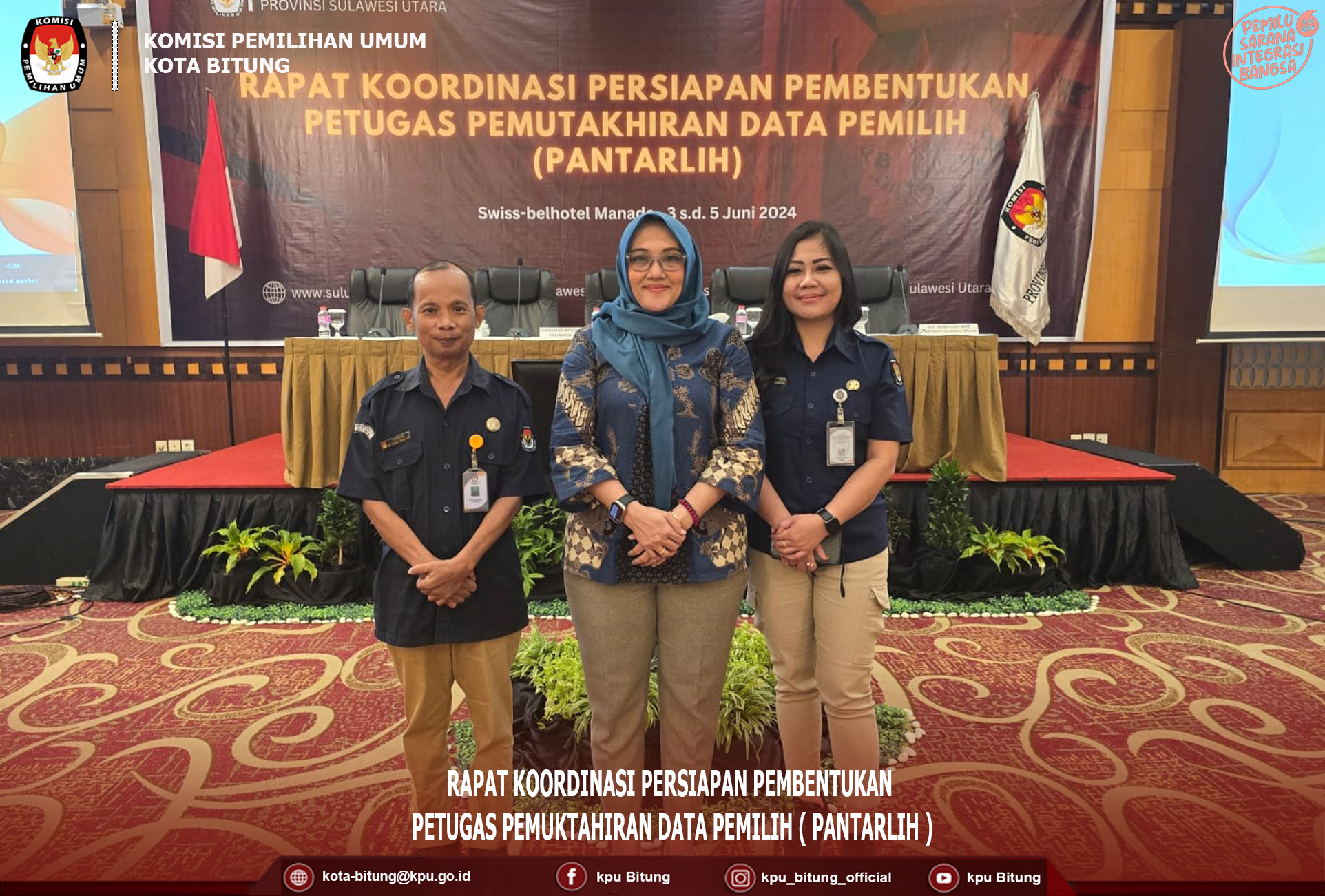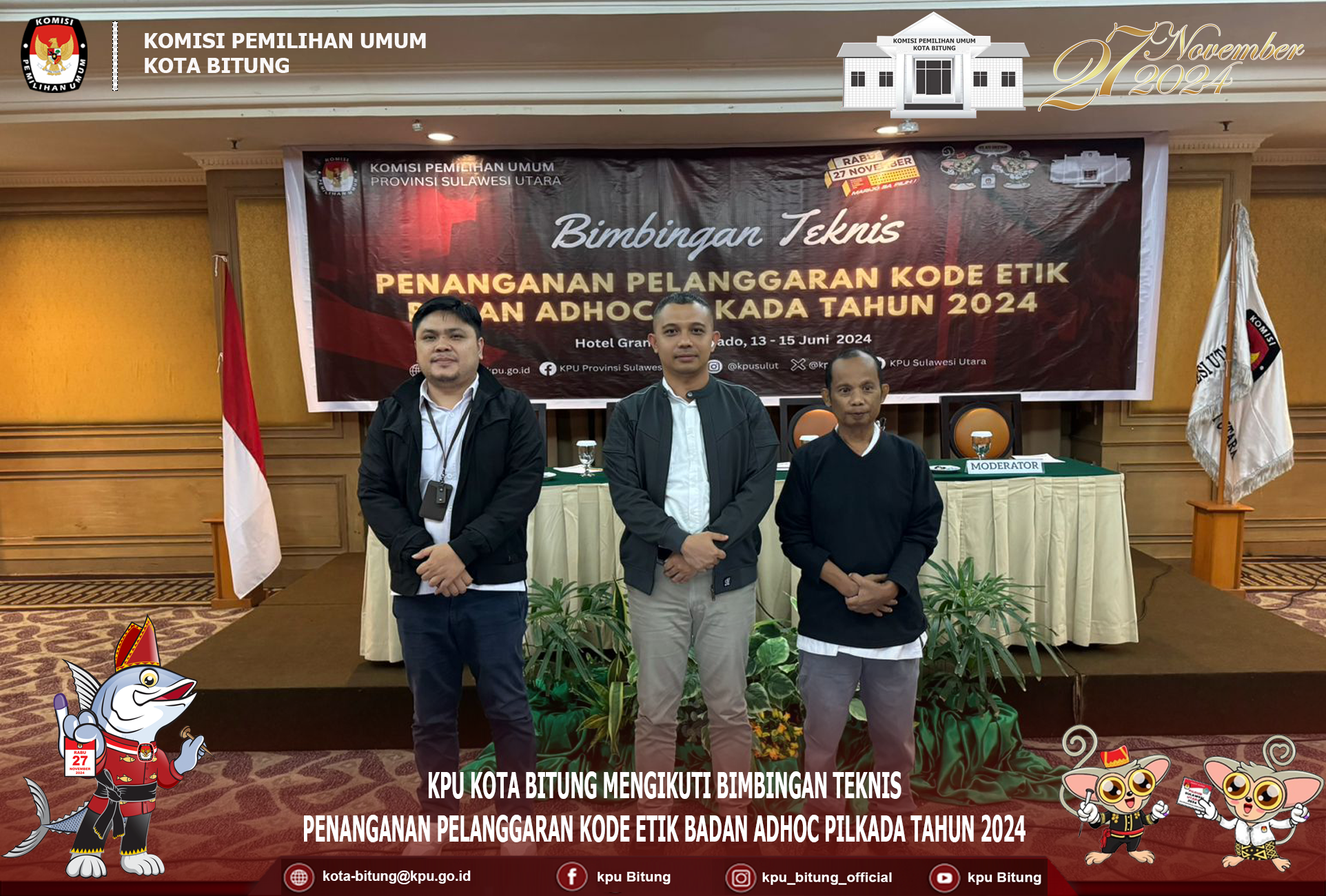 Bertempat di Hotel Grandpuri Manado KPU Kota Bitung mengikuti Bimbingan Teknis Penanganan Pelanggaran kode Etik Badan Adhoc Tahun 2024 yang berlangsung selama 3 hari 13-15 juni 2024. Peserta pada Bimbingan Teknis yakni Ketua Divisi Hukum dan Pengawasan, Kasubag Hukum dan SDM serta pelaksana pada bagian Hukum dan SDM KPU se-Sulawesi Utara . Rapat ini bertujuan untuk membahas strategi dan langkah-langkah konkret dalam menegakkan integritas, moralitas, dan etika dalam penyelenggaraan pemilihan umum di berbagai tingkatan, seperti KPU Provinsi, KPU Kabupaten/Kota, dan sebagainya. Rapat dibuka oleh Ketua KPU Sulut Kenly Poluan yang membahas mengenai pentingnya memulai penegakan kode etik dari diri sendiri melalui keteladanan. Poluan juga menyampaikan strategi untuk melakukan pencegahan pelanggaran kode etik melalui keteladanan, seruan moral, dan koreksi yang konstruktif. Langkah-langkah penanganan pelanggaran kode etik, yang berlandaskan pada asas-asas pemilu, seperti kejujuran, keadilan, profesionalitas, dan akuntabilitas, yang juga menjadi fokus utama dalam Bimbingan Teknis ini. Hadir sebagai narasumber Ketua DKPP RI Heddy Lugito yang membawakan materi dengan tema “Mekanisme Penegakan Kode Etik Penyelenggara Pemilu” yang menekankan peran DKPP dalam mengawasi etika penyelenggara pemilu, “ DKPP bukan hanya mengawasi, tetapi juga memiliki fungsi peradilan etik untuk memberikan sanksi terhadap pelanggaran etika yang dilakukan oleh penyelenggara pemilu”, ungkapnya. Diakhir paparannya Heddy Lugito menutu Bimbingan Teknis dengan closing statement “Pemilu Berintegritas Lahir Dari Penyelenggara Pemilu Berintegritas di Level Tertinggi. Penyelenggara Pemilu Berintegritas Akan Tegak Lurus Pada Demokrasi, Taat Kode Etik Dan Pedoman Perilaku Penyelenggara Pemilu.