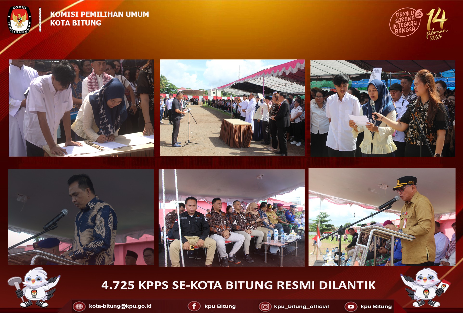 kegiatan ini dihadiri langung oleh usur Forkopimda Kota Bitung, Ketua KPU Kota Bitung Deslie D. Sumampouw, Ketua Divisi Sosialisasi Pendidikan Pemilih, Partisipasi Masyarakat dan SDM Wiwinda Hamisi, Divisi Perencanaan Data dan Informasi Frangky Takasihaeng, Ketua Divisi Teknis Penyelenggaraan Yunnoy S. Rawung, Ketua Divisi Hukum dan Pengawasan Muhajir La Djanudin, Sekretaris KPU Kota Bitung Poula E. Tuturoong, seluruh jajaran Sekretariat KPU Kota Bitung, PPK, PPS, dan KPPS Se-Kota Bitung.