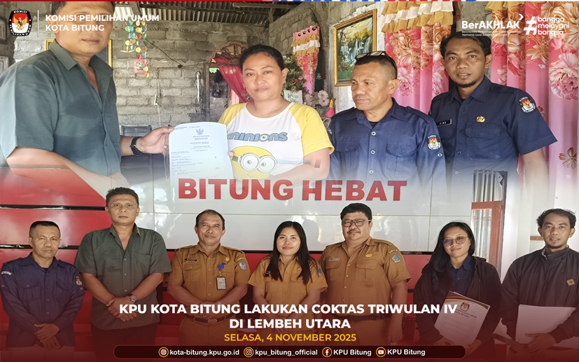Komisi Pemilihan Umum (KPU) Kota Bitung kembali menunjukkan komitmennya dalam menjaga validitas Daftar Pemilih Tetap (DPT) melalui pelaksanaan kegiatan Pencocokan dan Penelitian Terbatas (Coktas) Triwulan IV. Kegiatan intensif ini berfokus pada verifikasi data pemilih yang tidak memenuhi syarat (TMS) dari hasil pemutakhiran berkelanjutan, khususnya yang bersumber dari data terbaru Kementerian Dalam Negeri (Kemendagri). Kegiatan Coktas kali ini berlangsung selama satu hari penuh pada Selasa, 4 November 2025, dengan sasaran utama wilayah kepulauan, yaitu di Kecamatan Lembeh Utara. Tim KPU Kota Bitung yang berangkat dari kantor pukul 09.00 WITA dipimpin oleh Frangky Takasihaeng, Anggota KPU Kota Bitung sekaligus Koordinator Divisi Perencanaan, Data, dan Informasi (Rendatin). Frangky didampingi oleh empat staf dari Sekretariat Divisi Rendatin. Setelah berkoordinasi dengan Kantor Camat Lembeh Utara untuk mendapatkan alamat rumah, tim langsung menuju dua kelurahan, yakni Kelurahan Pintu Kota dan Kelurahan Mawali. Verifikasi lapangan ini secara spesifik bertujuan untuk mencocokkan data ubah—seperti perubahan nama, status perkawinan, dan tanggal lahir—serta data pemilih yang meninggal dunia. Hasil dari Coktas Triwulan IV di Pulau Lembeh ini sangat penting. Setelah melakukan pengecekan faktual di rumah-rumah warga, tim KPU memastikan bahwa data yang diturunkan dari Kemendagri telah sesuai dan benar dengan kondisi di lapangan. Temuan ini menegaskan akurasi data yang dimiliki KPU dan Kemendagri. Sebagai tindak lanjut, data pemilih yang diverifikasi tersebut selanjutnya dilakukan penyesuaian dan pemutakhiran dalam Daftar Pemilih Tetap (DPT). Langkah ini merupakan bagian krusial dalam upaya KPU Kota Bitung untuk menjamin hak pilih setiap warga tetap terjaga dan memastikan DPT yang digunakan dalam tahapan Pemilu berikutnya adalah data yang akurat, mutakhir, dan berkualitas.