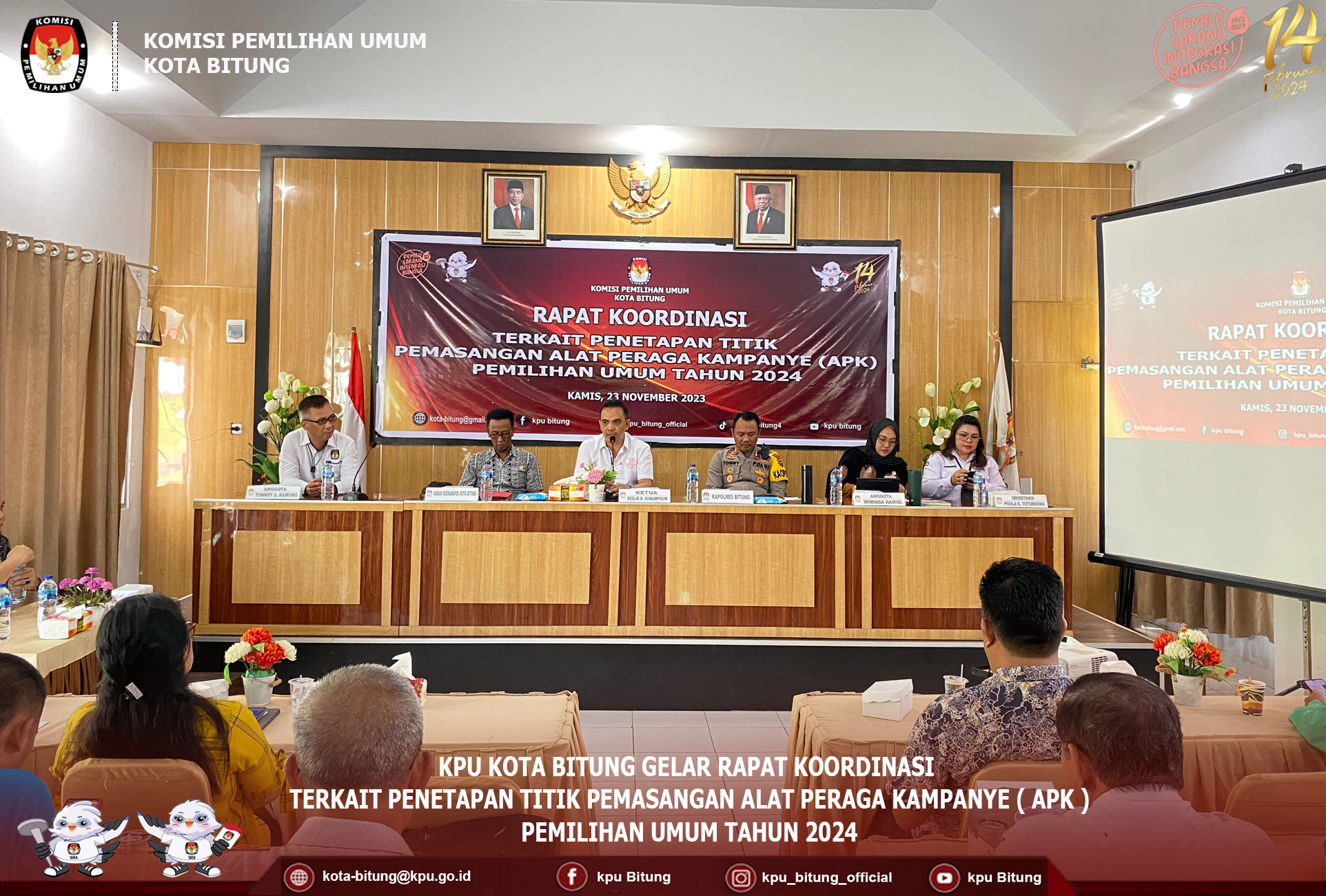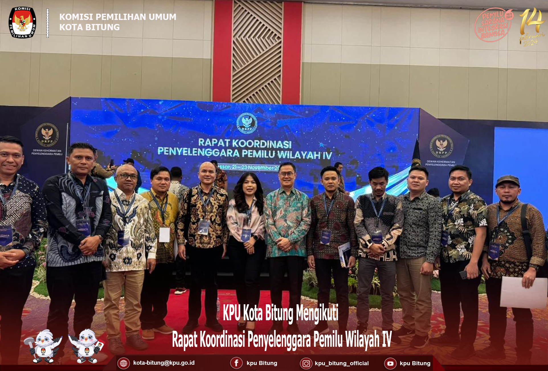 Makassar, kota-bitung.kpu.go.id – Dewan Kehormatan Penyelenggara Pemilu (DKPP) mengumpulkan penyelenggara pemilu KPU dan Bawaslu Provinsi dan Kabupaten/Kota di Wilayah Sulawesi dan Papua dalam kegiatan Rakor Penyelenggara Pemilu Wilayah IV di Makassar, Sulsel 21-23 November 2023. KPU Kota Bitung ikut serta dalam kegiatan penting tersebut dalam hal ini diikuti oleh Ketua Divisi Perencanaan Data dan Informasi Frangky Takasihaeng Rakor dibuka Ketua DKPP RI, Heddy Lugito. Dalam sambutannya, Lugito menekankan agar penyelenggara pemilu, baik jajaran KPU dan Bawaslu untuk benar-benar berkomitmen menyelenggarakan pemilu 2024, dengan berpedoman pada kode etik dan pedoman perilaku penyelenggara pemilu, sebagaimana diatur dalam Peraturan DKPP Nomor 2 Tahun 2017. “Saya berharap, kita semua sebagai penyelenggara pemilu dapat mewujudkan pemilu yang berintegritas,” harap Lugito dalam sambutannya. Selama kegiatan, peserta dibekali dengan materi dari Anggota DKPP RI, pihak TNI dan Polri, dan Tenaga Ahli KPU. Anggota DKPP RI, I Dewa Kade Wiarsa Raka Sandi memaparkan materi tentang pedoman beracara kode etik penyelenggara pemilu. Sedangkan Anggota DKPP RI, Mohammad Tio Aliansyah membekali peserta tentang penanganan pelanggaran kode etik penyelenggara pemilu ad hoc. Ketua Divisi Hukum dan Pengawasan KPU Sulut, Meidy Tinangon, dalam sesi diskusi memberikan masukan terkait norma dalam Peraturan DKPP tentang pedoman beracara penanganan pelanggaran kode etik penyelenggara pemilu. Turut hadir dalam kegiatan ini, Tim Pemeriksa Daerah (TPD) Sulawesi Utara unsur tokoh masyarakat, Dr. Victory Roti.