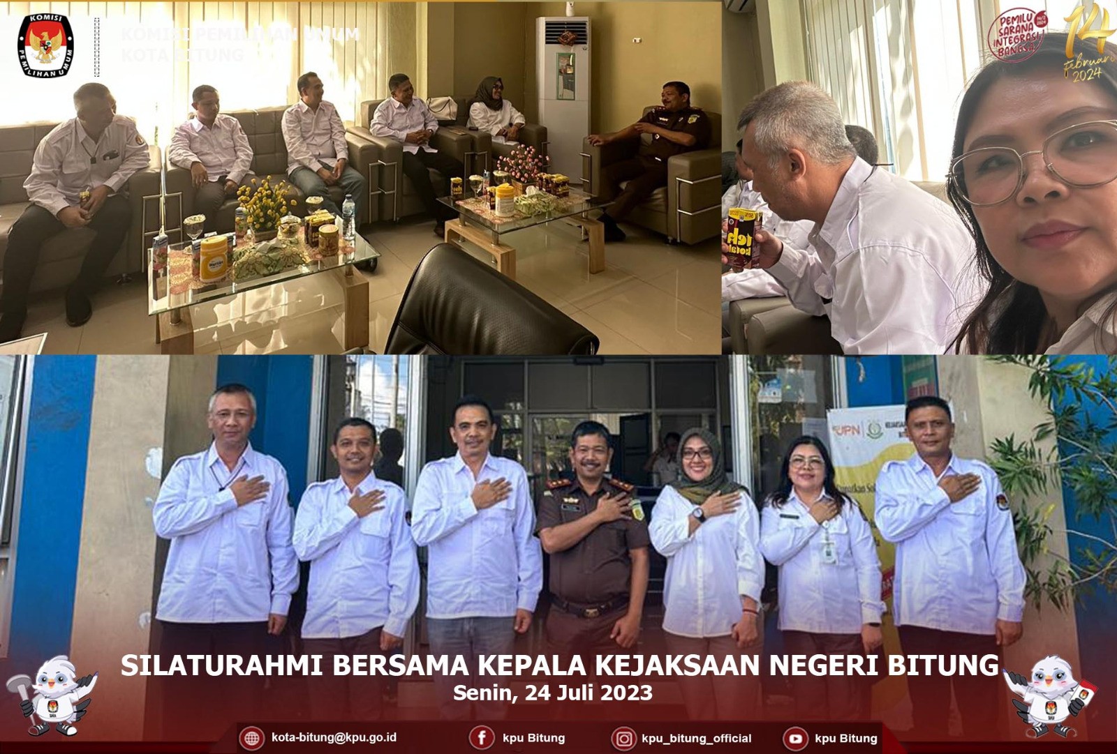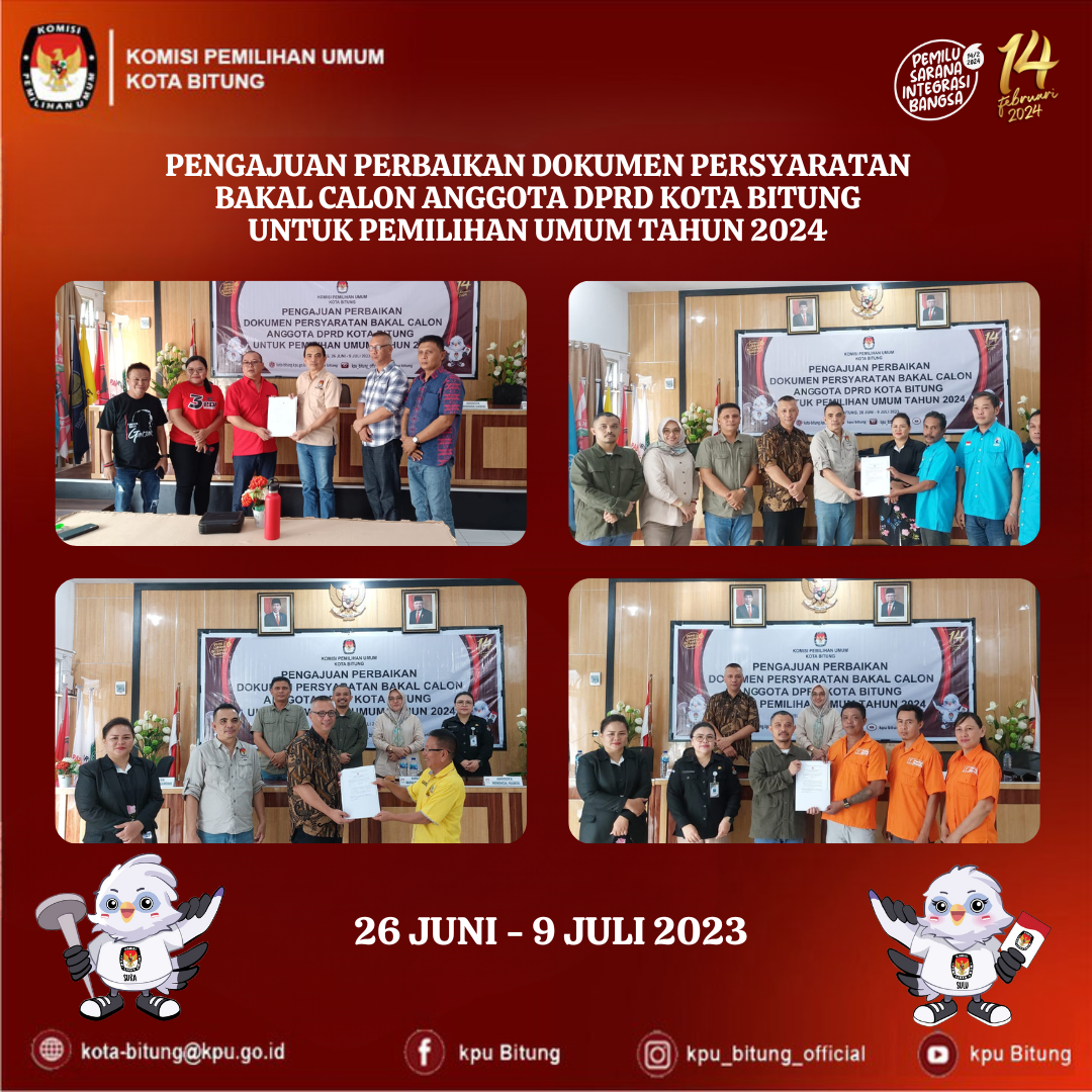 KPU Kota Bitung diwakili oleh Ketua Divis Perencanaan Data dan Informasi Frangky Takasihaeng, Kepala Sub Bagian Perencanaan, Data dan Informasi Marvinas Suratinoyo, dan operator data Elika Pandesingka dan Fickry Mokoagouw.