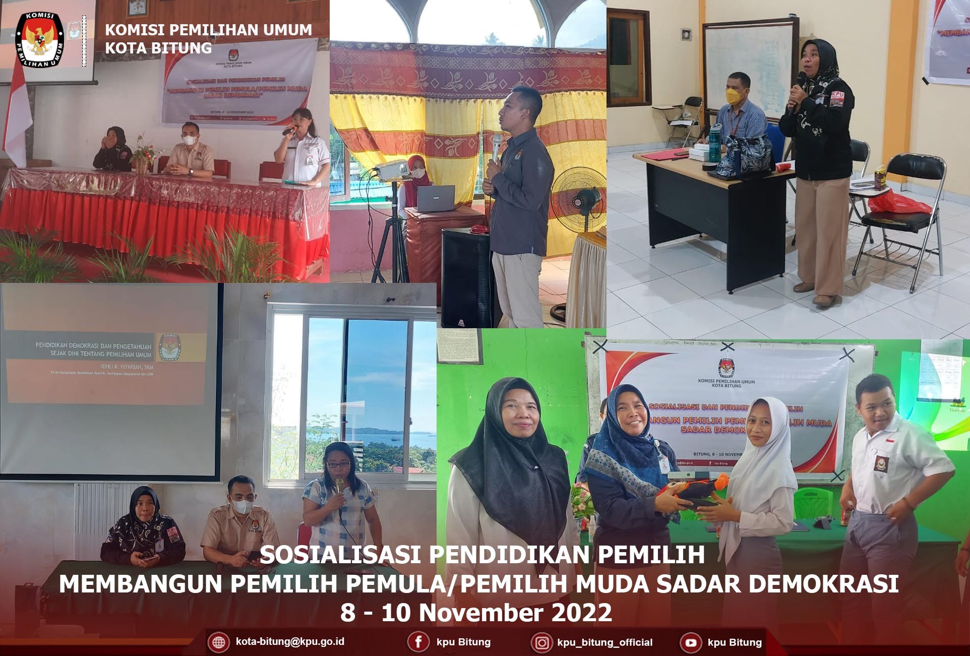 Hari pertama dilaksanakan di SMA MA AL KHAIRAAT, dan yang menjadi narasumber oleh Idhli Fithriah Selaku Ketua Divisi SDM dan Parmas KPU Kota Bitung, dilanjutkan hari kedua kegiatan bertempat di STIE PETRA BITUNG jam 09.30 Wita, narasumber oleh Ketua KPU Bitung Deslie Sumampouw, selanjutnya Di waktu bersamaan jam 13.00 Wita, SMA N 1 Bitung narasumber oleh Deslie Sumampouw dan SMA 2 Bitung, narasumber oleh Syarifudin Hasan Selaku Ketua Divisi Hukum dan Pengawasan KPU Bitung, dilanjutkan jam 18.00 Wita di STBM Bitung, narasumber oleh Idhli Fithriah. Dan dihari yang ketiga bertempat di MAN 1 Bitung, narasumber oleh Deslie Sumampouw,osialisasi ini bertujuan untuk Memberikan Pengetahuan awal bagi pemilih pemula yang nantinya akan memberikan hak suaranya untuk pertama kali di pesta demokrasi tanggal 14 februari 2024 mendatang.