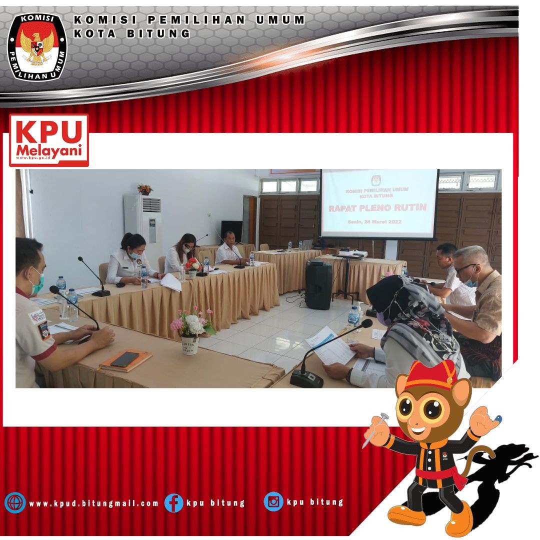 Bitung, 16 Maret 2022 KPU Kota Bitung mengikuti secara daring Rapat Koordinasi terkait Evaluasi Kesiapan Lokus Program Desa Peduli Pemilu dan Pemilihan dan Pencermatan Draft PKPU Partisipasi Masyarakat dalam Penyelenggaraan Pemilihan Umum dan Pemilihan sesuai surat Undangan Ketua KPU Provinsi Sulawesi Utara Nomor : 86/HM.03.01/71/2022 Tanggal 15 Maret 2022. Sesuai undangan rapat ini diikuti oleh Ketua, Anggota KPU Divisi Sosialisasi, Pendidikan Pemilih, Partisipasi Masyarakat dan SDM, serta Kasubag Teknis Penyelenggaraan dan Hubungan Partisipasi Masyarakat pada 15 Kabupaten/Kota se Provinsi Sulawesi Utara.