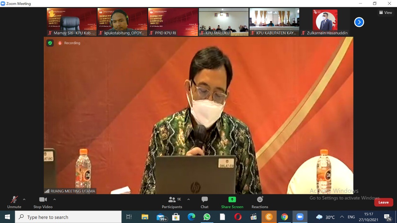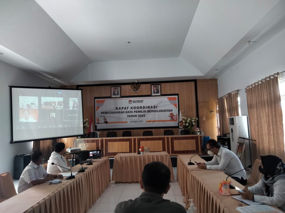 KPU kota bitung melaksanakan rapat koordinasi PDPB periode bulan oktober 2021 secara daring lewat aplikasi zoom meeting, guna membahas perubahan daftar pemilih disetiap bulanya.