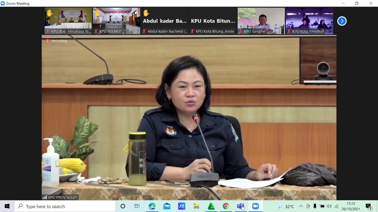 Berdasarkan undangan Sekretaris KPU Provinsi Sulawesi Utara Nomor : 336/TIK.02-Und/71/2021 Sekretariat KPU Kota Bitung dalam hal ini Sekretaris, Kasubag Program dan Data, Kasubag Keuangan Umum dan Logistik, Kasubag Hukum, Kasubag Teknis dan Parmas serta Operator e-Monev mengikuti Rapat Tindak Lanjut Mengenai Instrumen Monitoring dan Evaluasi Pelaksanaan Kegiatan melalui aplikasi zoom.