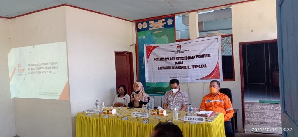 KPU Kota Bitung menggelar Sosialisasi dan Pendidikan Pemilih Lanjutan pada Kategori yang ketiga Yaitu Daerah Rawan Konflik/Bencana pada 2 Kelurahan berdasarkan evaluasi pelaksanaan pilkada di tahun 2020. Sesuai dengan jadwal yang telah direncanakan pada Selasa, 12 Oktober 2021 Kelurahan Bitung Tengah menjadi lokus pertama pada kategori ini dengan mengundang para kepala lingkungan, para kepala RT dan perangkat kelurahan yang ada. Pembukaan kegiatan langsung oleh Ketua KPU Kota Bitung Bapak Deslie Sumampouw