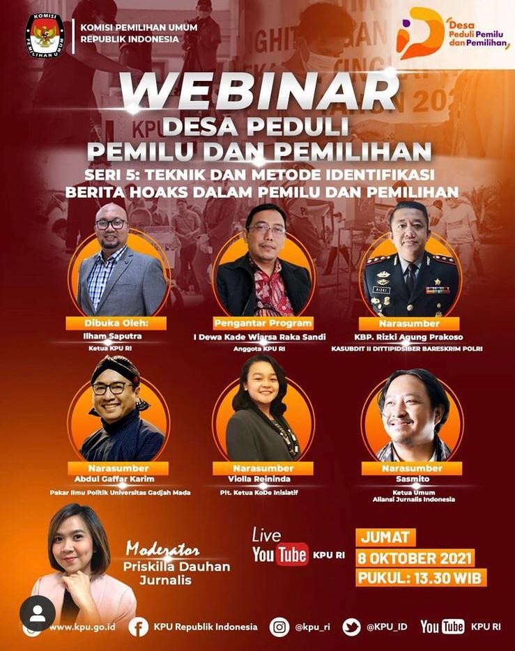 Narasumber pada kegiatan ini adalah Bapak Viktori N. J. Rotty sebagai seorang akademisi dan pernah menjabat sebagai komisioner KPU Kota BItung dengan Materi Partisipasi Publik dalam Pemilu dan sebagai moderator dipandu oleh Ketua Divisi Sosialisasi KPU Kota Bitung Ibu Idhli R. Fithriah. Narasumber menyampaikan bagaimana peran masyarakat sangat dibutuhkan dalam menentukan pemimpin-pemimpin yang nantinya akan melayani masyarakat sendiri dan bagaimana masyarakat harus menyadari bahwa setiap masyarakat memiliki tanggung jawab akan berjalannya negara ini.