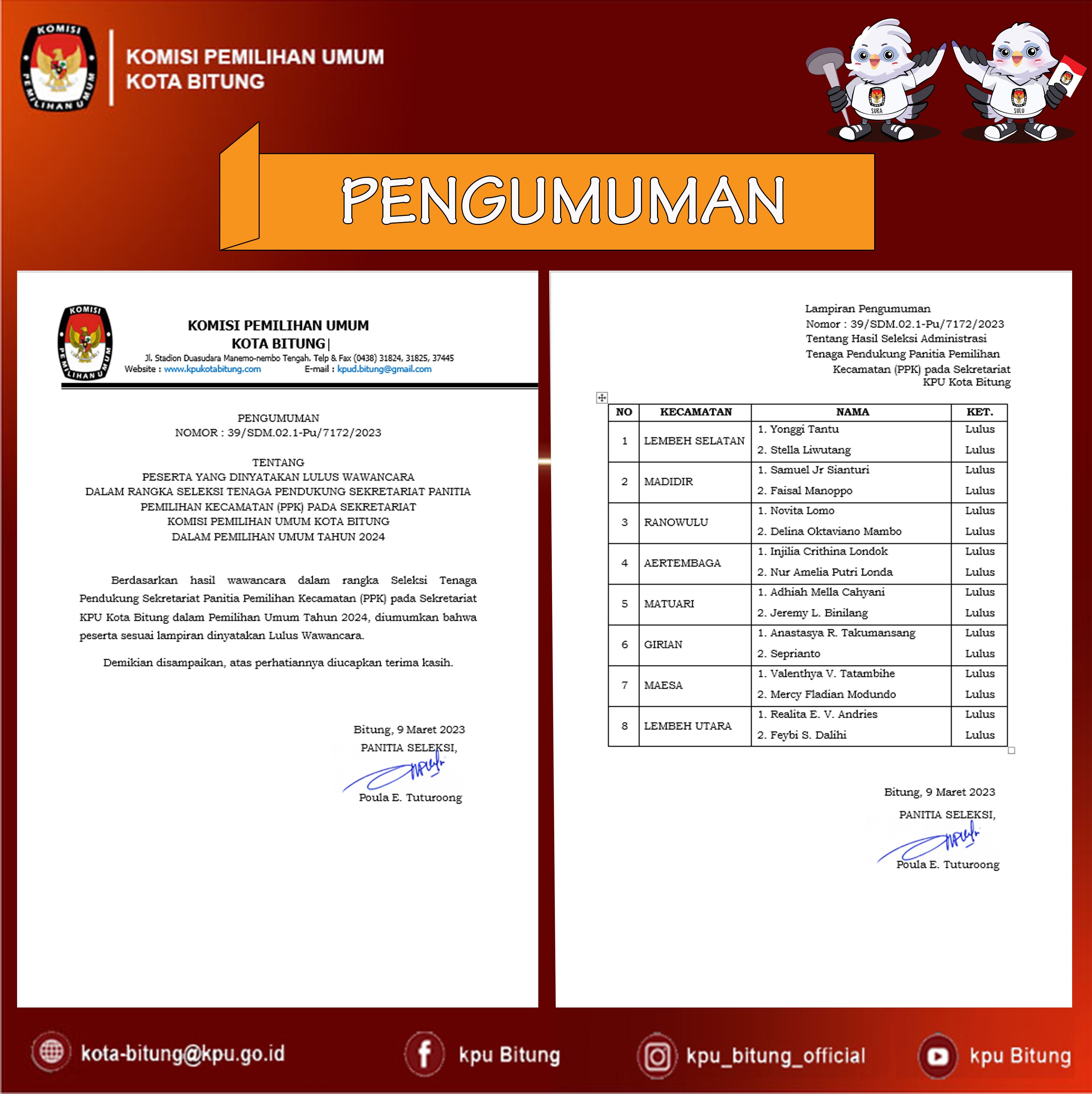Kegiatan tersebut di buka secara langsung oleh Ketua KPU Kota Bitung Deslie D Sumampouw, di dampingi Anggota KPU Kota Bitung, Yunnoy S. Rawung, Idhli R Fithrah, Dan Juga Sekretraris KPU Kota Bitung Poula E Tuturoong, Serta dihadiri juga oleh Ketua PPK Dan Sekretariat PPK Se-Kota Bitung.