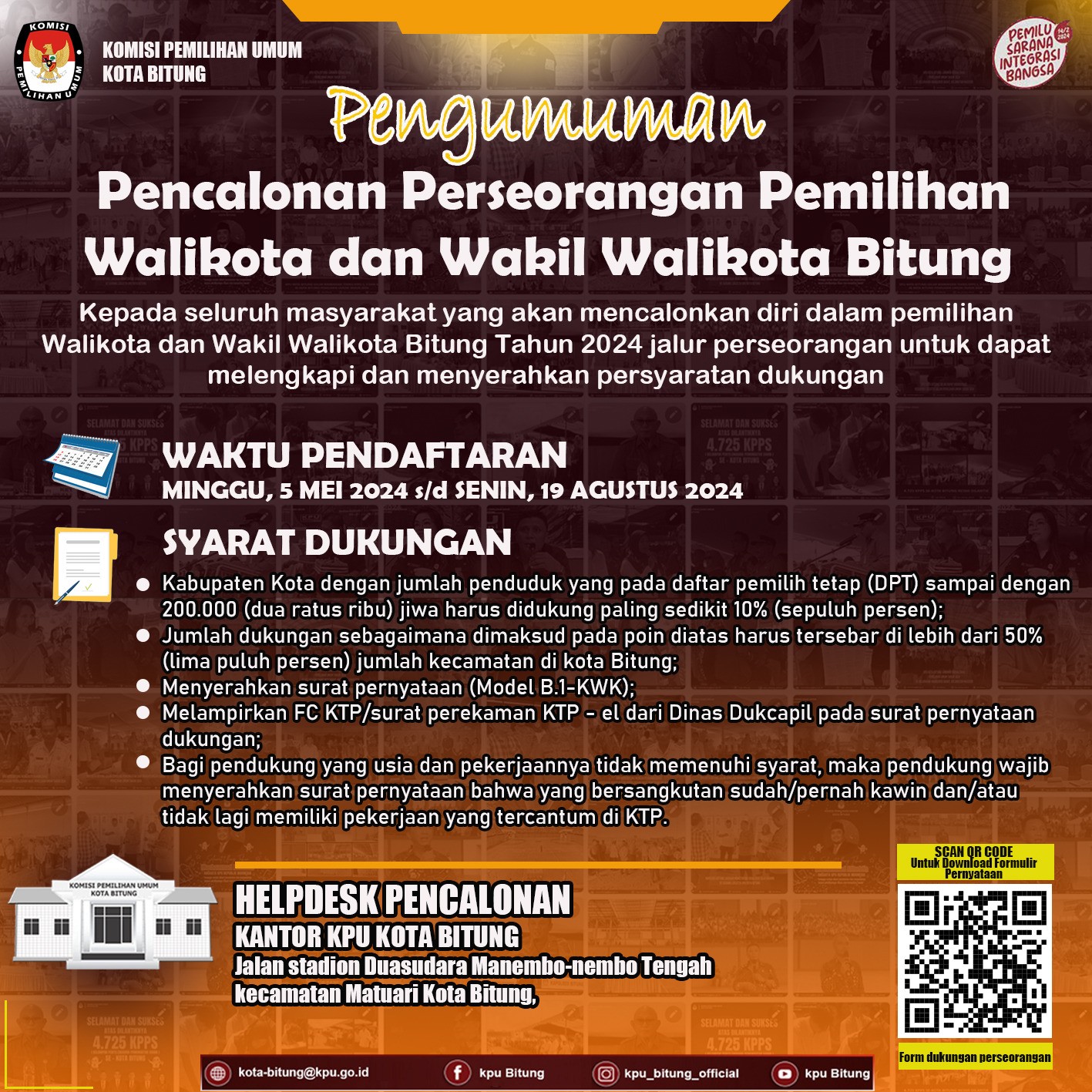Teman Pemilih, Berikut ini adalah Pengumuman Tentang Seleksi Calon Anggota Kelompok Penyelenggara Pemungutan Suara ( KPPS ) Kota Bitung Untuk Pemilihan Umum Tahun 2024 Klik Disini